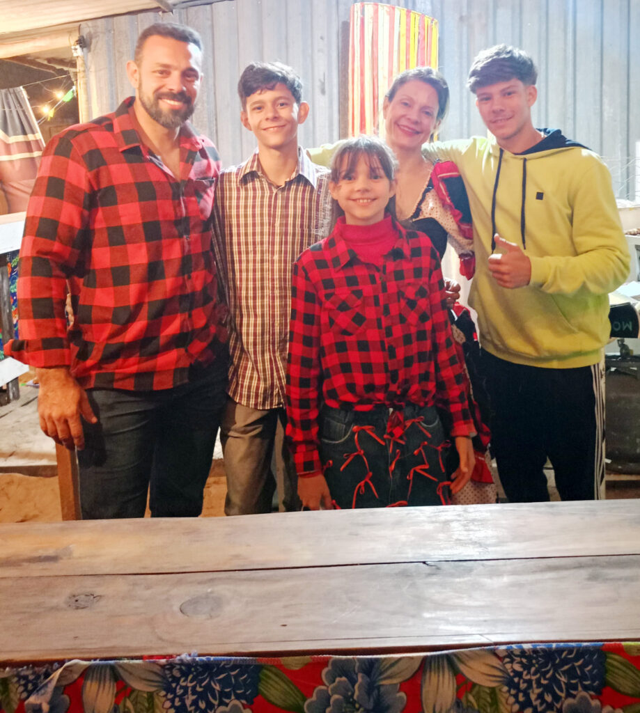 No dia 12 de julho foi realizado o Arraiá da RX Fit, organizado de forma muito especial pelo casal, Aline Sinhorini e Bruno Sinhorini proprietários da RX FIT que tiraram a camisa xadrez do guarda-roupa para um animado arraiá . O encontro foi também um momento de celebração de mais um aniversário da academia em um ambiente com muita alegria, boa música e ainda sorteios de vários brindes, sem falar na decoração junina que estava linda, de muito bom gosto. Parabéns pela realização. Na foto o casal Aline Sinhorini e Bruno Sinhorini e os filhos Cauã, Erick e Sofia