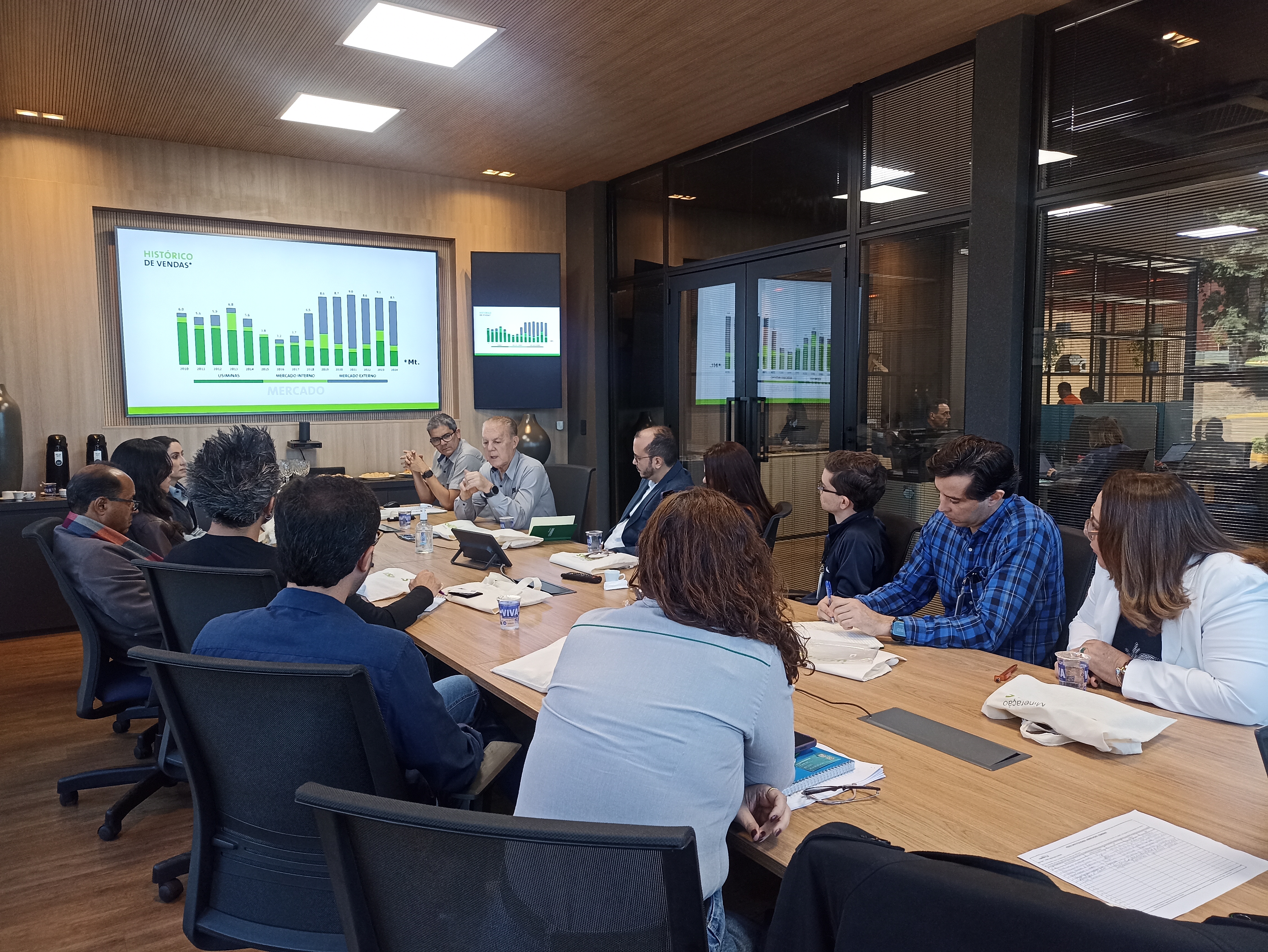 No dia 01 de julho estiveram reunidos na sala principal de reuniões da Mineração Usiminas – Mina Oeste localizada na cidade de Itatiaiuçu, jornalistas da região, o presidente da mineração Carlos Rezzonico e diretores da empresa cuja finalidade foi apresentação de cenários e perspectivas da empresa, além dos investimentos em segurança e meio ambiente. A Mineração Usiminas que foi fundada em 2010 após a compra da mineração que era de propriedade da J Mendes em 2008, atualmente tem uma produção de 10 milhões de ton/ano com exportação para Oriente Médio, Europa e ocupa a quinta posição do ranking nacional em produção de minério de ferro. Em 2019 iniciou o processo de desaguamento de rejeitos e hoje operam sem a utilização de barragens, o que gera segurança para a população no entorno e de seus funcionários. Atualmente está no desenvolvimento do Projeto Compactos, que tem por objetivo dar continuidade das operações por meio de exploração de minérios pobres e assim aumentar a vida útil da mina por mais 30 anos. Em um futuro próximo pretende realizar a construção de um mineroduto de 30km facilitando assim o escoamento da produção de forma seguro e ágil mas que esbarra em projeto de lei que proíbe a construção mas que já está sendo articulado com governo para que não haja o comprometimento das operações da empresa mediante a não construção do mineroduto . Foi apresentado também ações de desenvolvimento das comunidades em que atua que compreende 5 municípios, Itatiaiuçu, Mateus Leme, Igarapé, Rio Manso e Itaúna, nessas cidades mais de 100 mil pessoas foram alcançadas em 2024 com projetos apoiados pela mineração, programas com a população como o projeto Diálogo de Vizinhos, portas Abertas e entrega de 92 ações de educação ambiental. No meio ambiente a empresa investe continuamente em controle ambiental, gestão hídrica e preservação de áreas verdes, o projeto Mina de Mel, beneficia produtores locais de mel e derivados, a área de preservação ambiental da mineração é aproximadamente seis vezes que a área ocupacional, 52.500 mudas de espécies nativas plantadas em 2024, e 93,65% da água utilizada no beneficiamento do minério é recirculada nas operações. Após a apresentação teórica o grupo de jornalista foi levado à uma visita às operações. Dentre os locais visitados está a sala de controle das operações onde se observa cada operação, desde equipamentos e veículos até o monitoramento de ações e comportamentos dos funcionários que operam os mesmos, identificando ações incorretas de uso ou fadiga que podem gerar acidentes e ainda monitoramento da qualidade do ar e da água da região. Foi um dia muito especial vivenciado na empresa pelo jornalista, Luiz Parreiras que esteve presente e parabeniza ao presidente e seus diretores pelo encontro que de forma didática apresentaram os cenários da empresa cujo objetivo é mostrar à população através do olhar dos profissionais de comunicação as ações desenvolvidas pela empresa, suas conquistas e desafios.